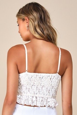 Lulus Sensationally Flirty White and Beige Lace Bustier Cami Top